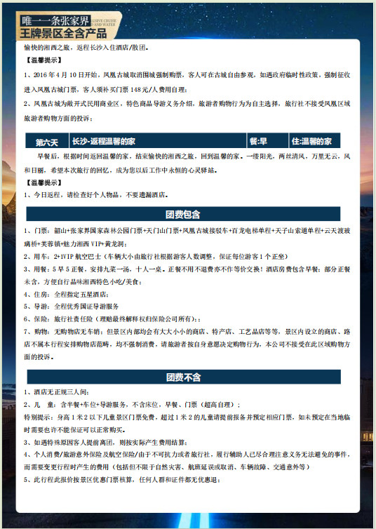 張傢(jia)界6日(ri)遊價格:¥3680元